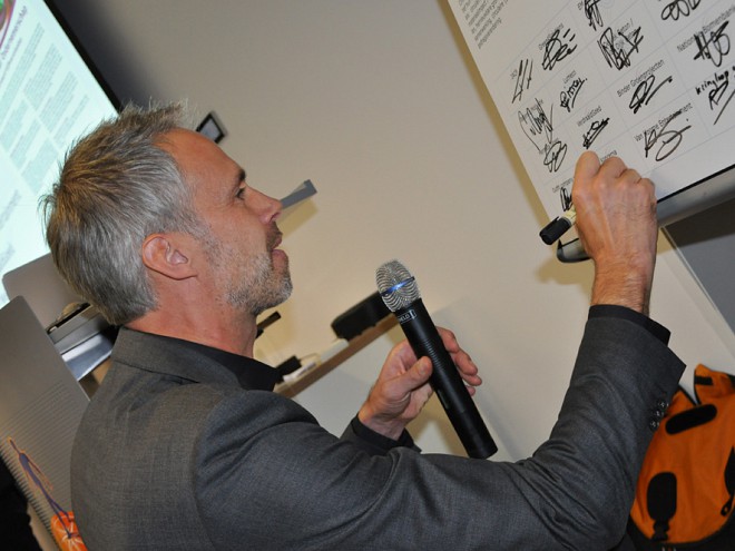 Voor de pauze was het gastspreker Stefaan Vandist die dat bewustwordingsproces bij de aanwezigen flink aanwakkerde. In een bevlogen presentatie die doorspekt was van humor en realiteit prees hij het circulair ondernemen bij elke ondernemer aan, aangetoond met voorbeelden. Zijn afsluitende woorden “And what will we do next Monday?” waren voor dagvoorzitter Gerard de Winter meer dan genoeg aanleiding om de ondernemersmarkt en de circulaire proeverij in te leiden en aan te kondigen.